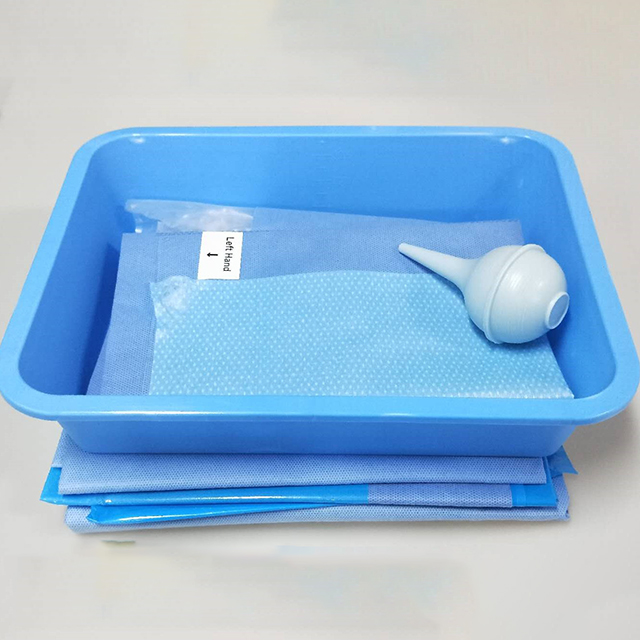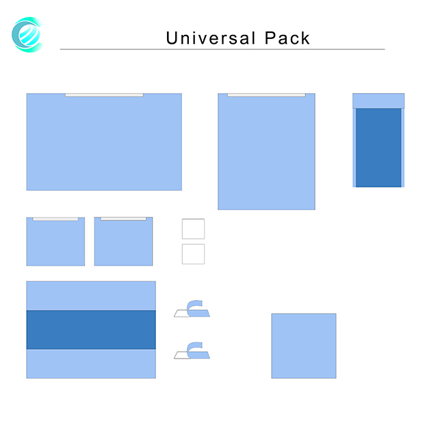 Open the package to remove the Universal Surgical Packs placed in the central instrument table, tear the tape, unfold the back table cover. Then Take out sterilization instructions card with the instrument clip. After confirm sterilization is complete, the circuit nurse take out equipment nurse's surgical bag, to help equipment nurse wear Surgical gowns and gloves. Finally, equipment nurses sort out all items in the surgical pack and add external medical equipment in the instrument table. Please note aseptic technique in the entire process.