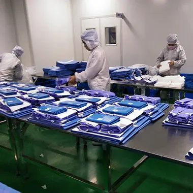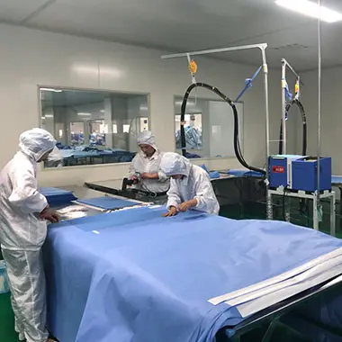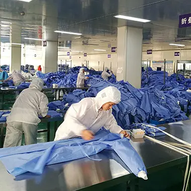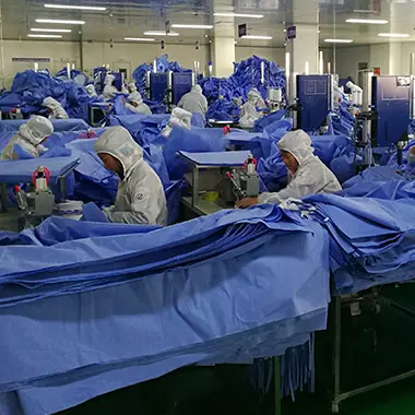 We established 63,000 square meters modern standard ISO clean workshop, and one ETO sterilization center with sterile capacity more than 7,500m3 per month. There are 1,000 skilled staff, 75 QC officers and over 20 product specialist in our R&D center. The monthly capacity is 1,800 tons of non-woven fabric, 200,000 sets of surgical packs, 3,800,000pcs drapes, 2,800,000pcs gowns etc.